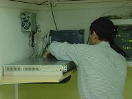 | Arriba a la izquierda se ve la fuente ATX que proporciona la corriente a la nevera. Al fondo se ve el SAI y enchufado a él, el temporizador para conectar y desconectar la nevera |