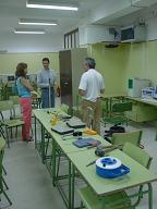 | Leticia -profesora del ciclo de Agencia de viajes- vino a darnos el "visto bueno" a nuestro montaje. Además, como de costumbre, para hacer cualquier mínima cosa hacen falta un buen montón de herramientas que puedes ver por las mesas del taller |